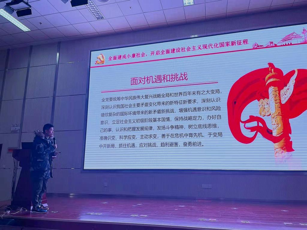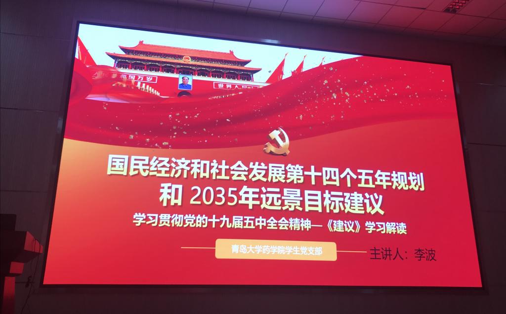 学生职业规划等对学生聚焦的关注点进行讲解,指出了全会精神对于药学学生学习生活的指导意义,并希望同学们坚持学习宣传十九届五中全会精神,把学习党的十九届五中全会精神与深入学习习近平新时代中国特色社会主义思想结合起来,将个人梦与中国梦结合起来,努力为建设社会主义现代化国家添砖加瓦。