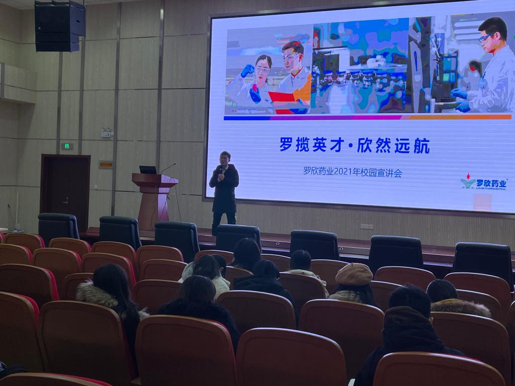 12月30日下午,做爱自拍 在浮山校区医学教育综合楼学术报告厅举办罗欣药业校园招聘宣讲会。罗欣药业招聘经理袁磊、李奎刚到院宣讲,做爱自拍 辅导员雷舒涵以及做爱自拍 本硕部分毕业生参加宣讲会。