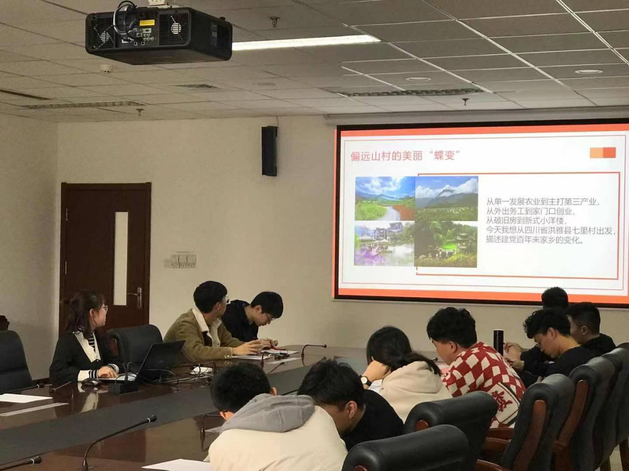 伍思怡同学从自己的家乡七里村前后两方面的党史切入,七里村扶贫效果显著,逐步摆脱刻板印象,对那里发生的翻天覆地变化进行了详细的讲解。