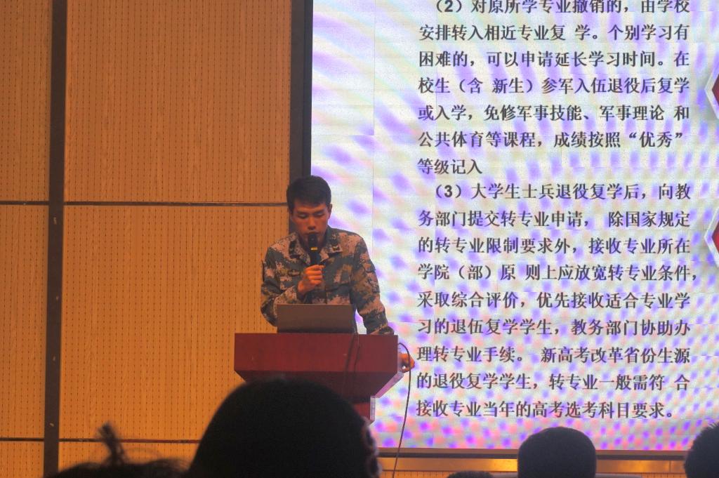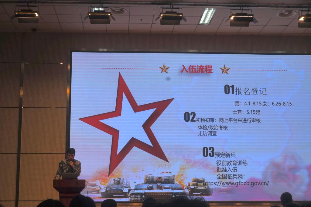 武装部-文体部在医学教育综合楼学术报告厅举办征兵宣讲会。退役复学学生2019级纺织学院赵婧惠、2020级做爱自拍